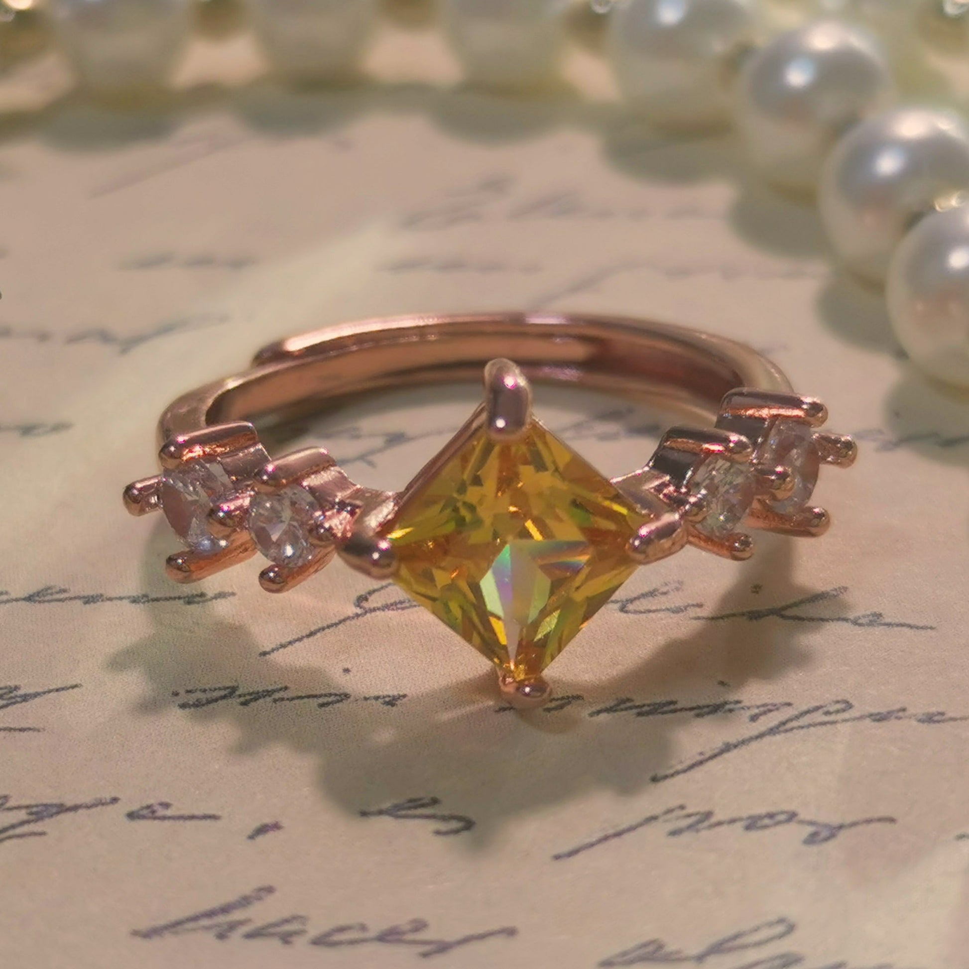 Yellow Shinning Cubic Zirconia Topaz Rings For Women Rose Gold Plated
